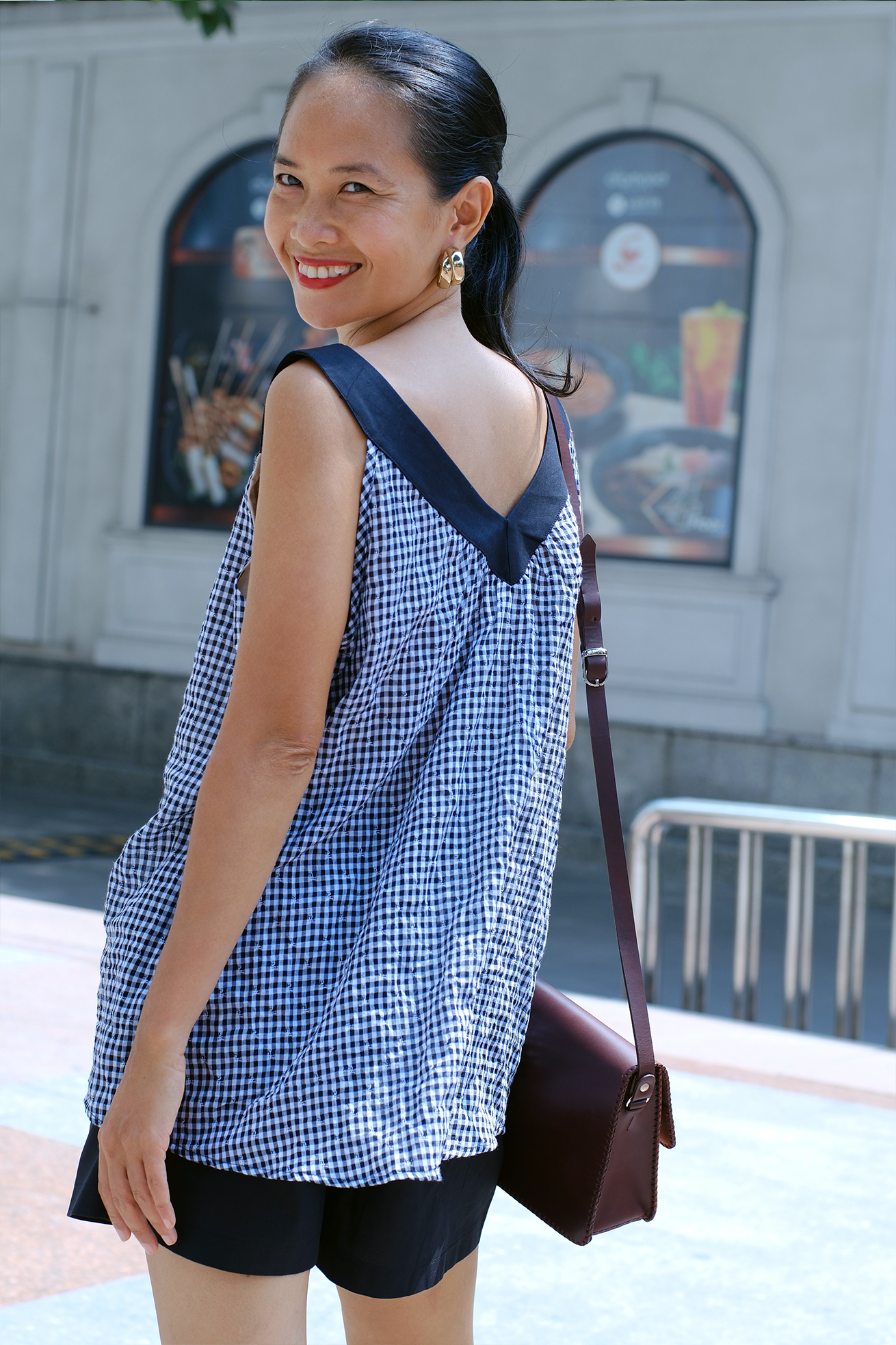 – V neck Gingham Black and White Cami Set