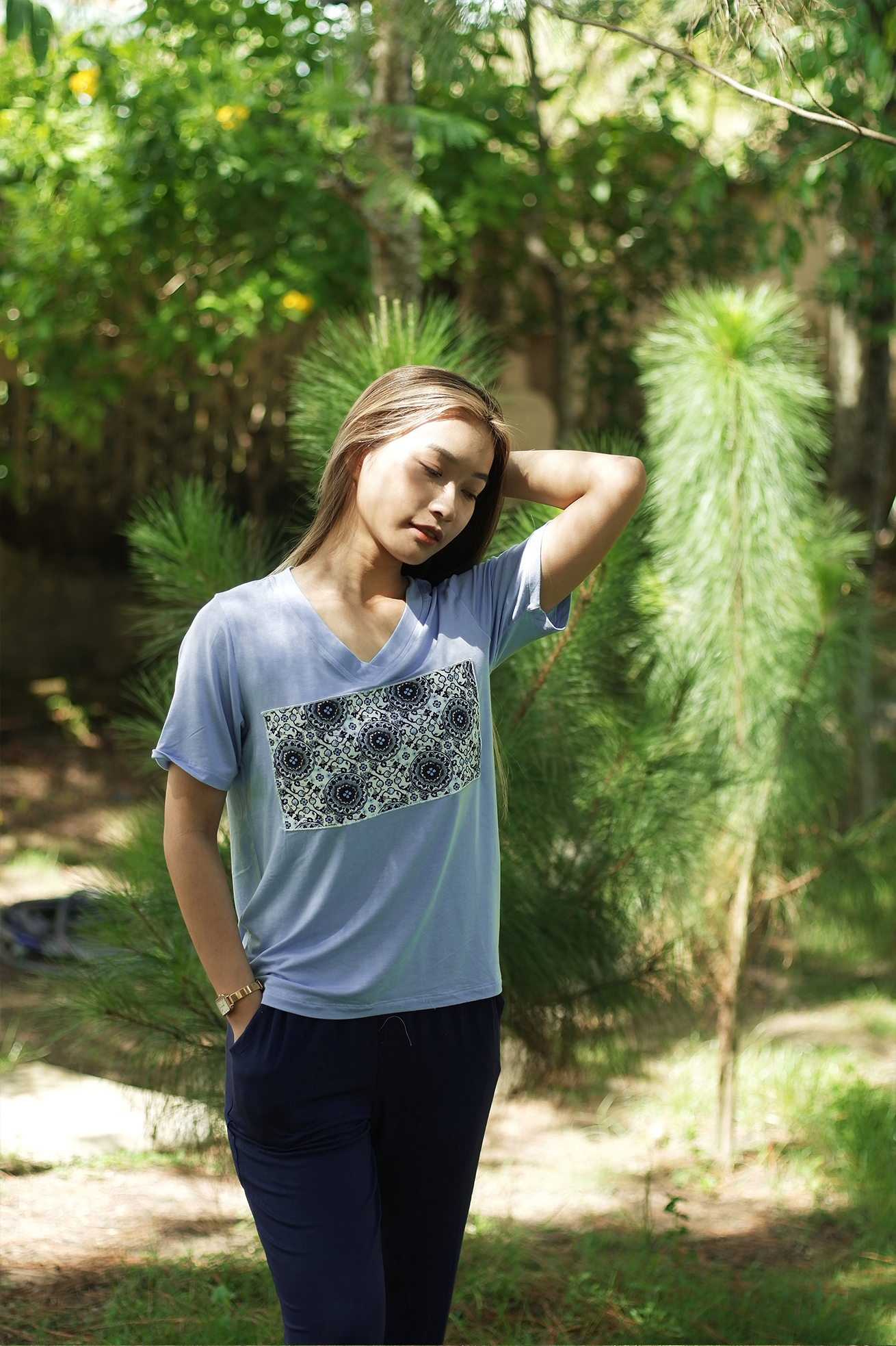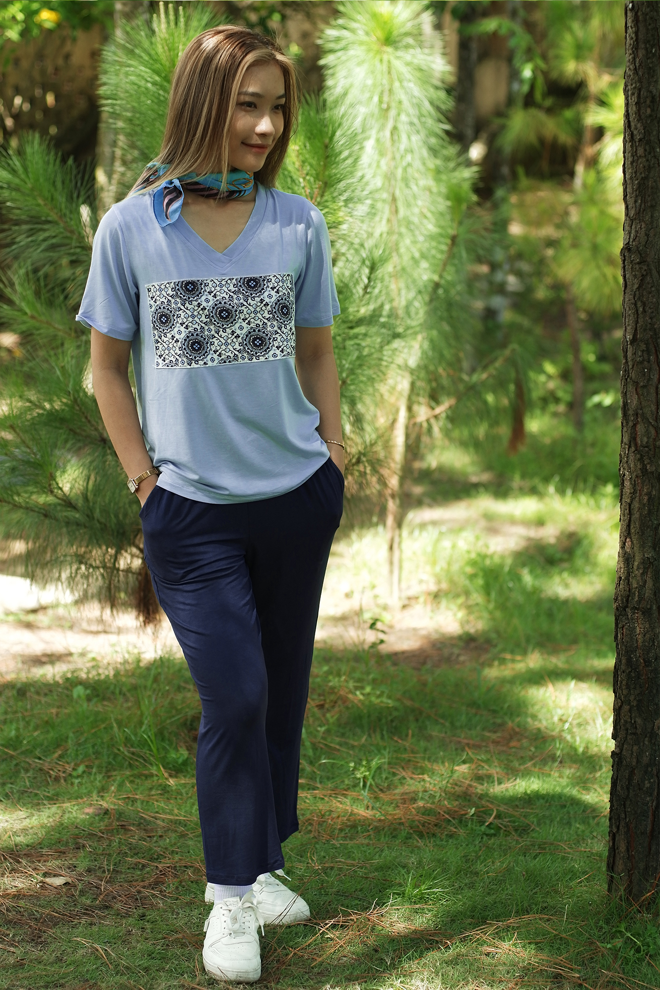 – Bộ áo cổ tim tay ngắn, quần dài, lưng thun, có 2 túi xéo