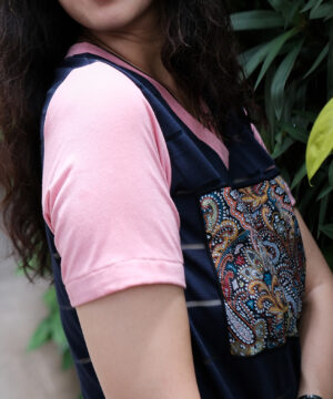 Áo basic navy phối hồng