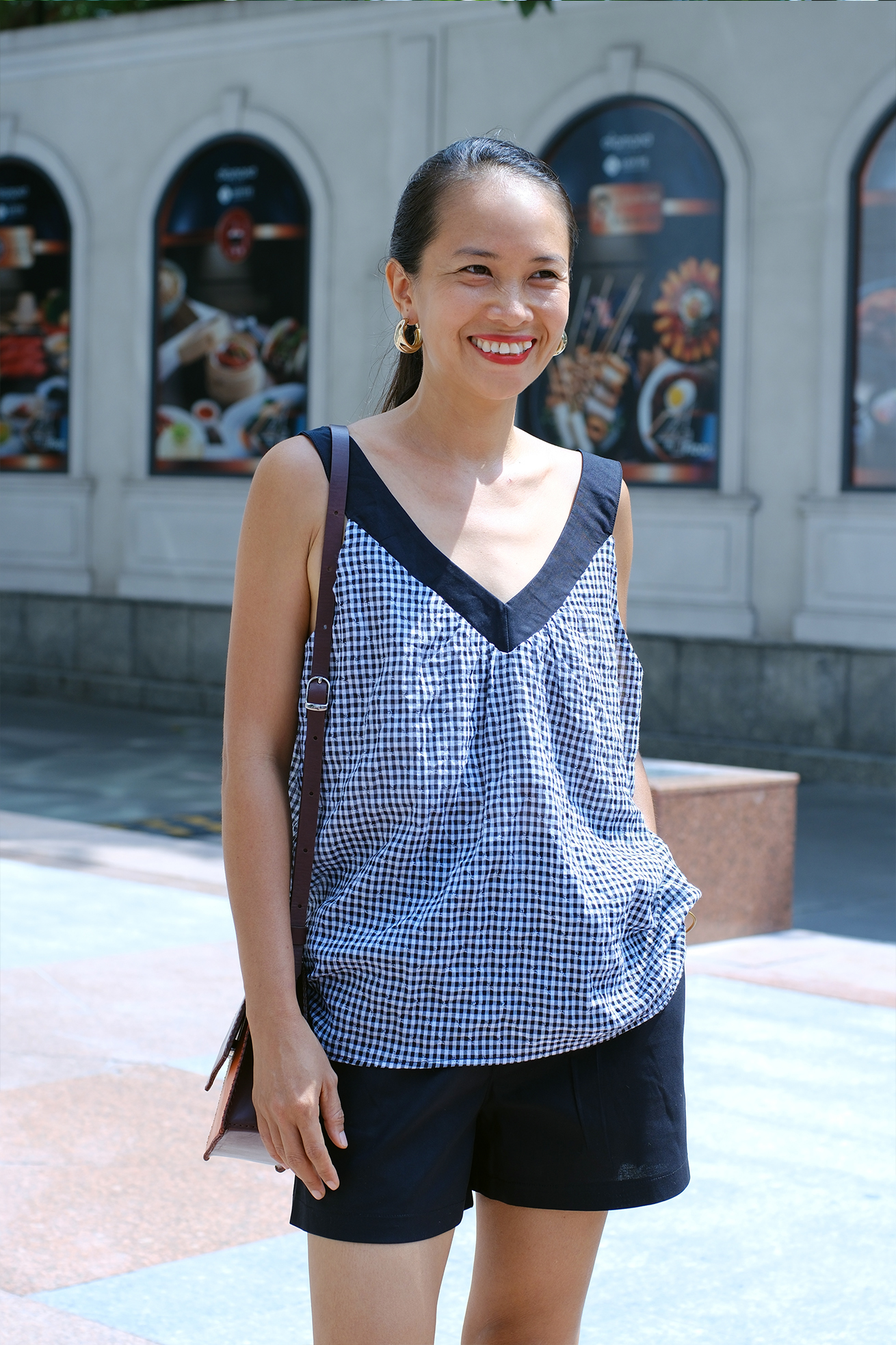 – V neck Gingham Black and White Cami Set